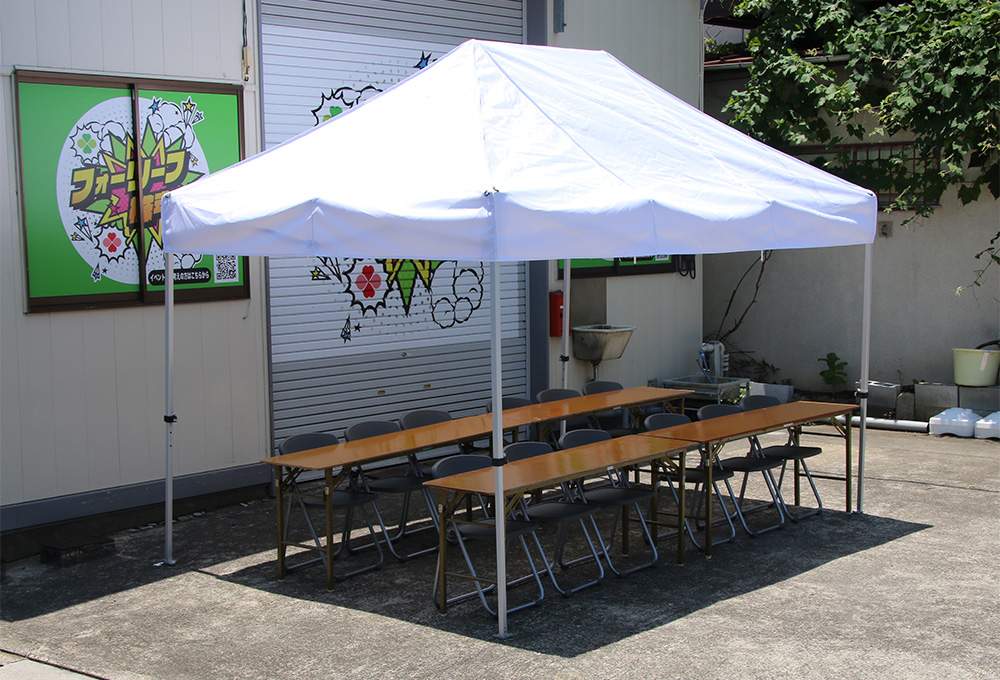 イベントに最適な大型テントやイベント用品をオンラインでご予約いただけます。