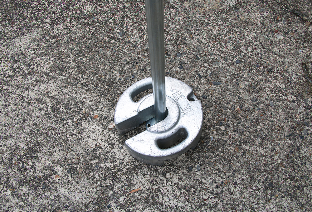 テントの安定性を高める為に設置する重しです。 テント脚部分に置く事で、強風によるテントのズレを防ぎます。 積み重ねて重さを調整する事もできます。