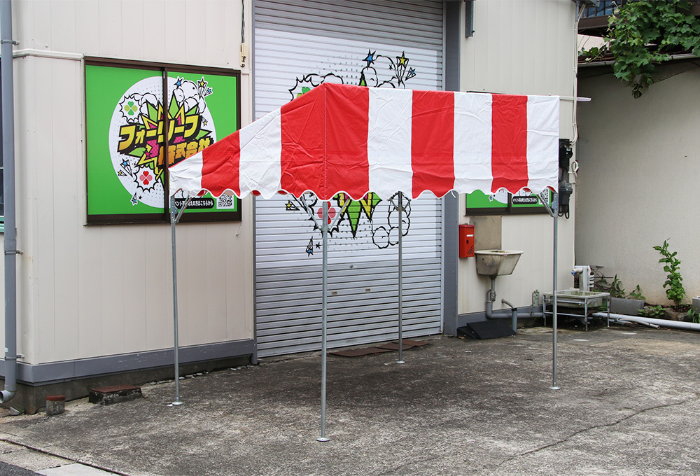 スタイリッシュな見た目に加え、雨水の流れを一方向にまとめられるため排水性に優れ、屋外イベントや出店ブースに最適です。