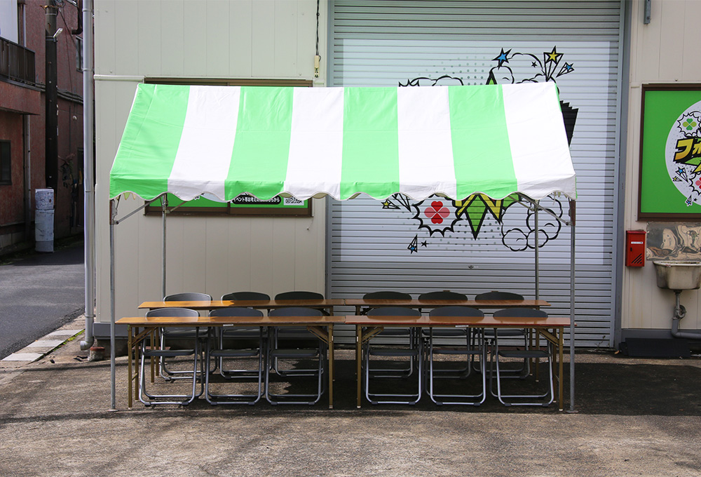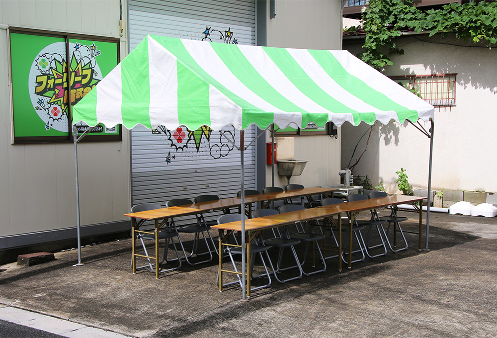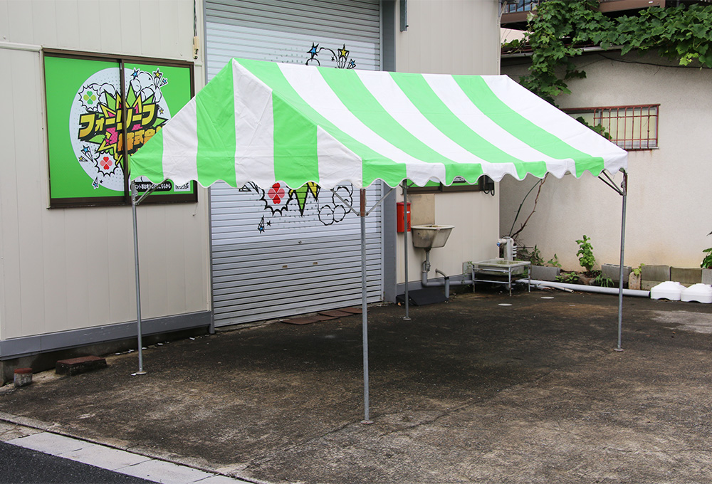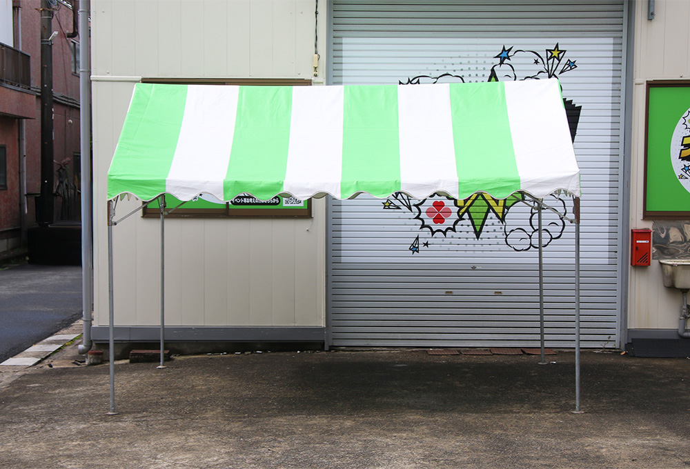 GKテントは、パイプフレームと天幕を別々に組み立てるタイプの本格的なイベント用テントです。